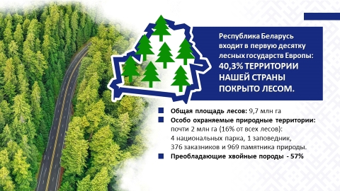 Республика Беларусь входит в первую десятку самых лесных стран Европы: более 40% территории Беларуси покрыты лесами. Беларусь стала единственной страной на постсоветском пространстве, которая за годы независимости сумела увеличить площадь лесов (практически на