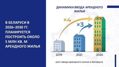 Набирает темп строительство арендного жилья. На сегодняшний день арендное жилье – наиболее приемлемый способ решения жилищного вопроса. С одной стороны, оно позволяет повысить мобильность трудовых ресурсов и привлечь специалистов в малые и средние города Беларуси. С другой – закрепить молодых специалистов на первом рабочем месте. К слову, в Беларуси в 2026–2030 гг. планируется построить около 5 млн кв. м арендного жилья. Это один из главных приоритетов на будущие годы, основная цель которого – закрепление кадров и развитие регионов.