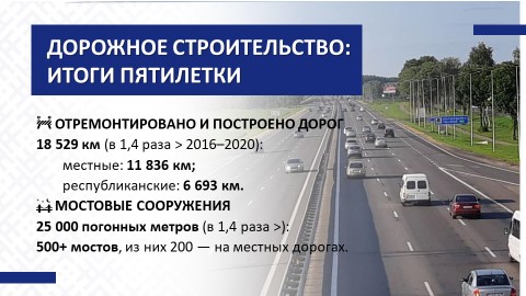 В текущей пятилетке перед транспортным комплексом стоят не менее важные задачи. Прежде всего, предстоит обеспечить улучшение дорожной инфраструктуры, развитие быстрого и доступного регионального сообщения. Особый приоритет – стопроцентное обеспечение уже к концу 2026 года кратчайших маршрутов от райцентров к агрогородкам дорогами с усовершенствованным покрытием. Параллельно будет вестись преобразование системы пассажирского сообщения.